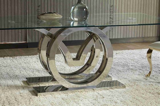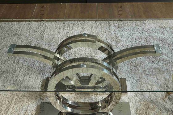Las gaviotas diseñan la plata superior de cristal de acero inoxidable del marco de la mesa de comedor de la base