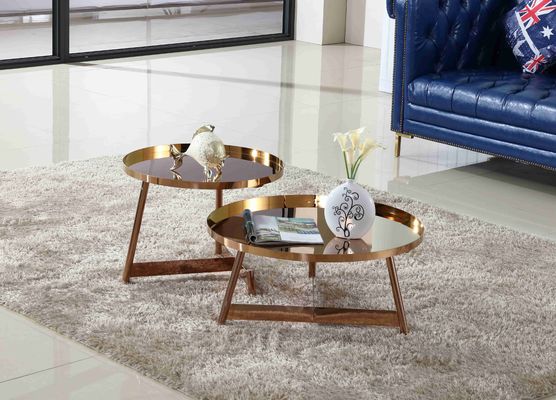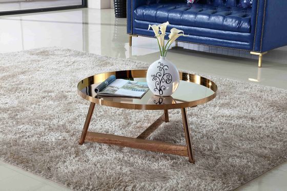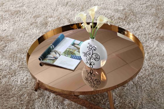 La ronda inoxidable de lujo del capítulo de acero del diseño interior subió mesa de centro brillante del oro para los muebles de la sala de estar
