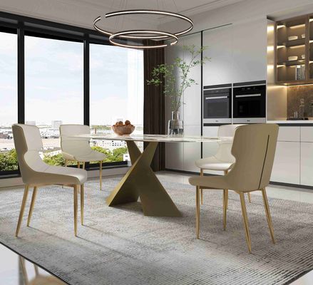 Mesa de comedor de bronce de lujo de la roca del tablero de la mesa de comedor de la pequeña del apartamento del diseñador luz moderna nórdica brillante de la mesa de comedor