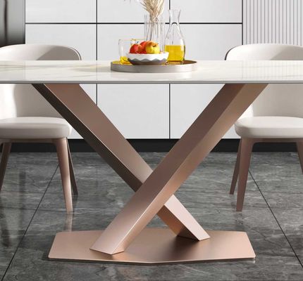 Fabricante inoxidable Wholesale de la mesa de comedor del marco de acero de la X-base del llano