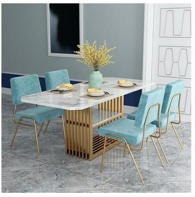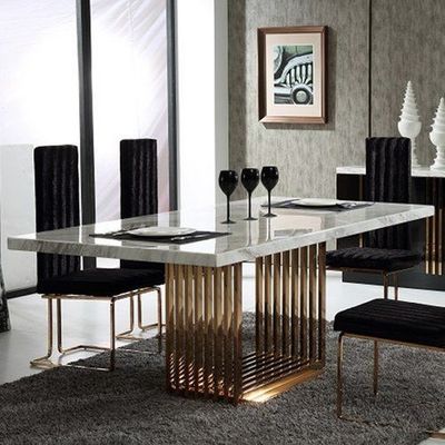 La mesa de comedor superior de mármol nórdica fijó la combinación moderna rectangular de la tabla y de la silla de la tabla 150*90*75