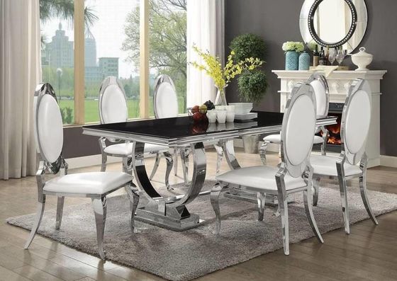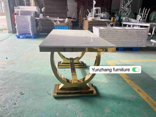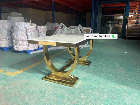 Mesa de comedor caliente del diseño de la venta con el top de mármol bajo de acero inoxidable del oro de plata