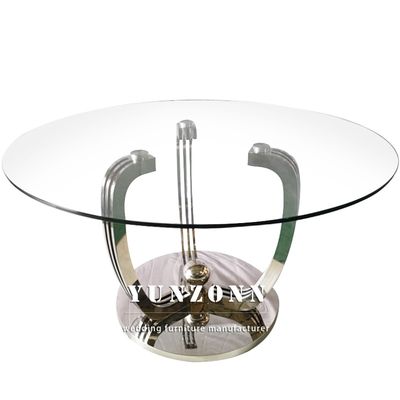 Top de cristal moderado 10m m grueso transparente de Round Dining Table del modelo de lujo con la base del oro 0