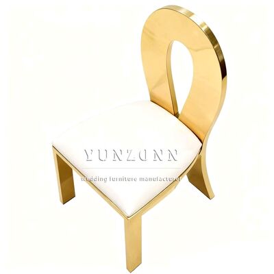 | Nombre del producto: | Sillas de metal para comedor de hotel, banquetes y eventos de boda con marco de acero inoxidable dorado de estilo moderno y almohadilla blanca |