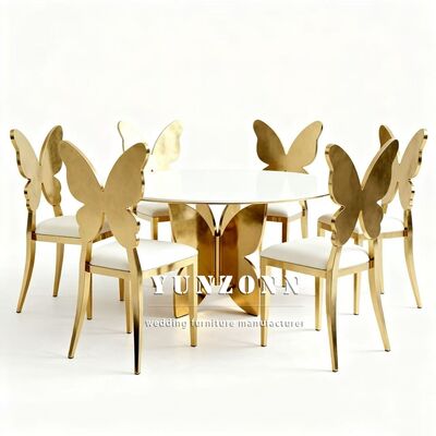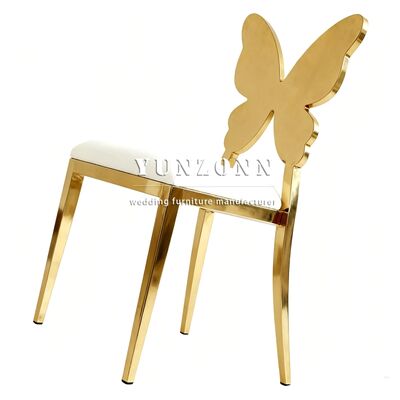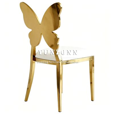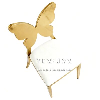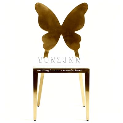 Fabricación profesional de acero inoxidable espalda de mariposa silla de comedor cómoda respaldo dorado sillas de boda y eventos |