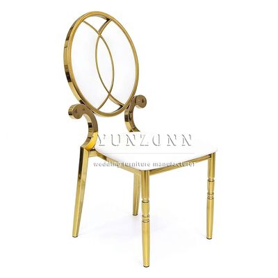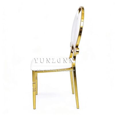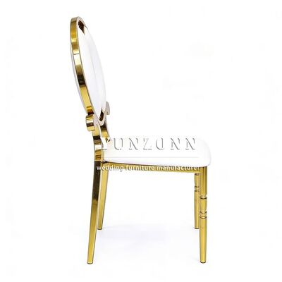 Silla de comedor dorada apilable moderna al por mayor, silla de boda de acero inoxidable dorado elegante para restaurante y banquete |