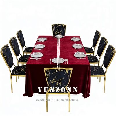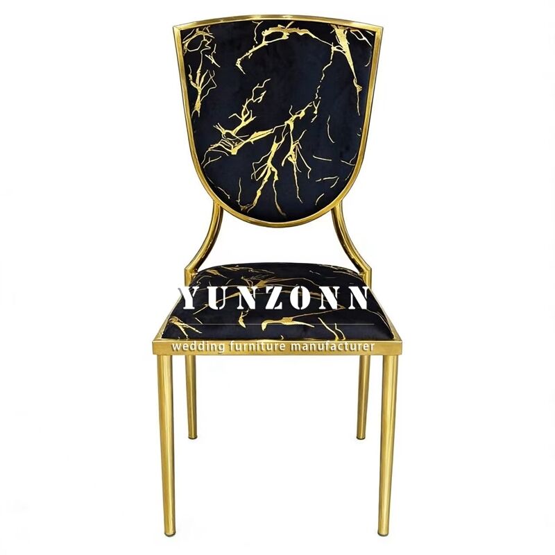 | Nombre del producto: | Sillas de banquete apilables de metal acolchadas de terciopelo negro para bodas y hoteles con temática dorada |