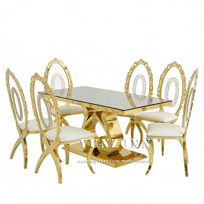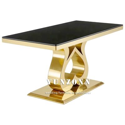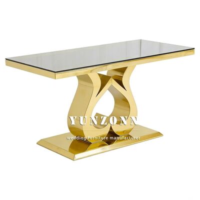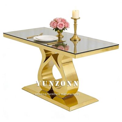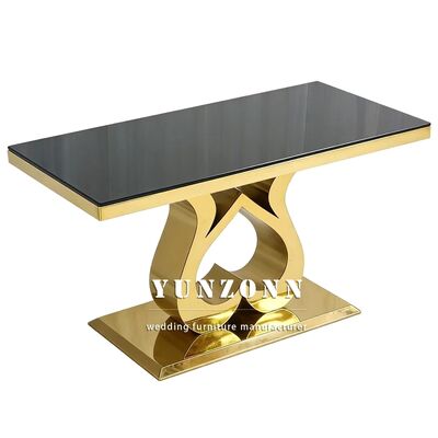 | Nombre del producto: | Mobiliario para eventos de hotel económico, fiesta, mesa para novios, acero inoxidable dorado, tapa de vidrio, mesa de comedor rectangular para bodas |