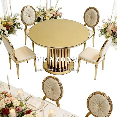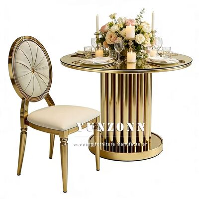 | Nombre del producto: | Luxo Moderno de forma redonda de vidrio superior dorado de acero inoxidable mesas de comedor de lujo |