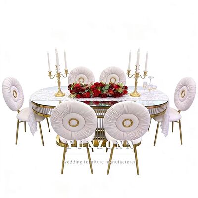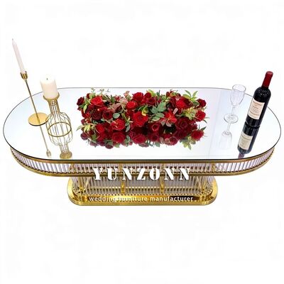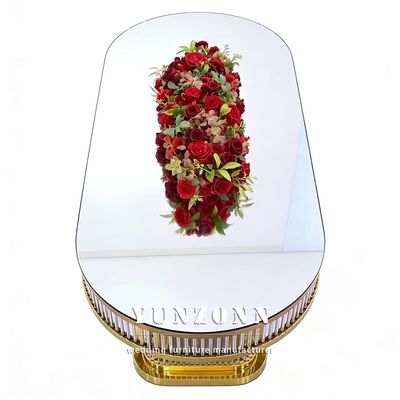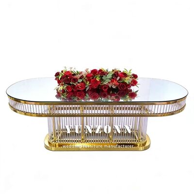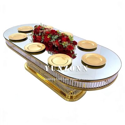| Nombre del producto: | Luxo moderno duradero de forma ovalada Decorativo marco de acero inoxidable de vidrio templado mesa de bodas para restaurante |