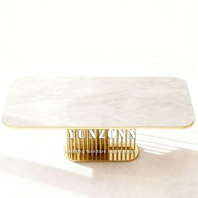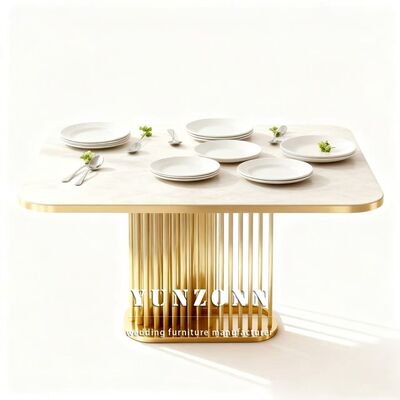 | Nombre del producto: | Mesa de banquete de boda de hotel de acero inoxidable con tapa de mármol para eventos al aire libre, diseño contemporáneo duradero, muebles de alquiler |