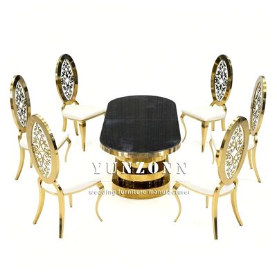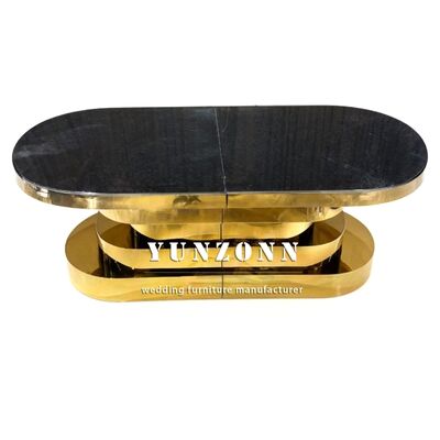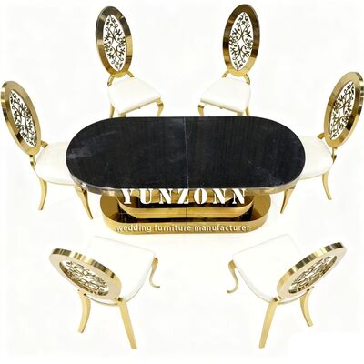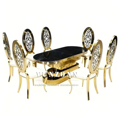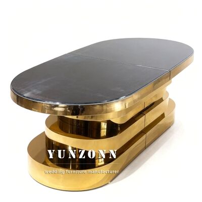 | Nombre del producto: | Mesa de comedor de acero inoxidable dorado para fiestas con tapa de espejo de cristal para bodas |
