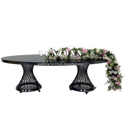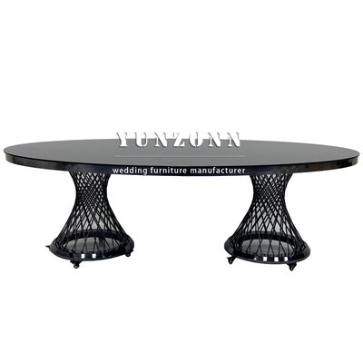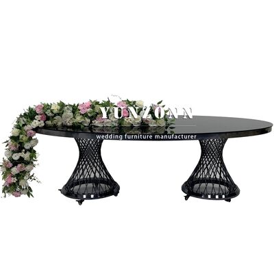 Decoración de la boda de lujo de acero inoxidable negro mesa de boda oval de la boda mesa móvil