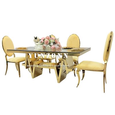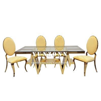| Nombre del producto: | Mesa de comedor de lujo moderna de acero inoxidable y vidrio para 6 sillas |