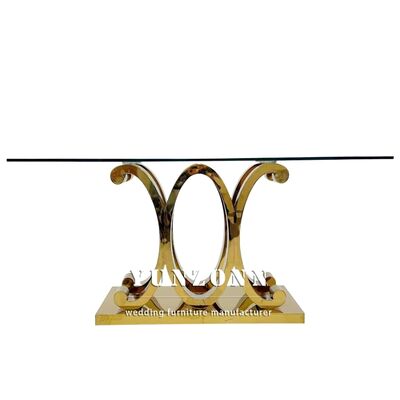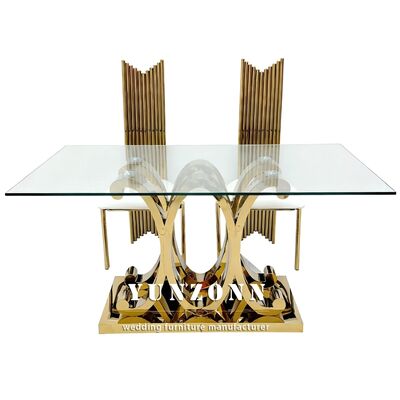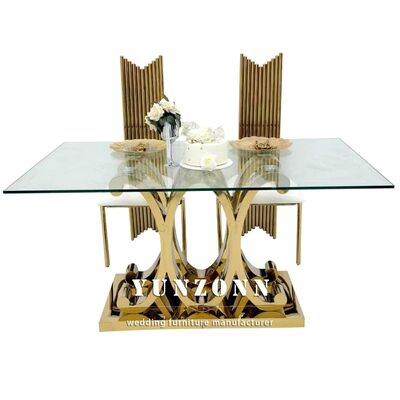 | Nombre del Producto: | Mesas de Comedor Rectangulares de Lujo Moderno con Patas Doradas, Decoración de Cristal, Juego de Mesas de Acero Inoxidable para Eventos, Banquetes de Boda |