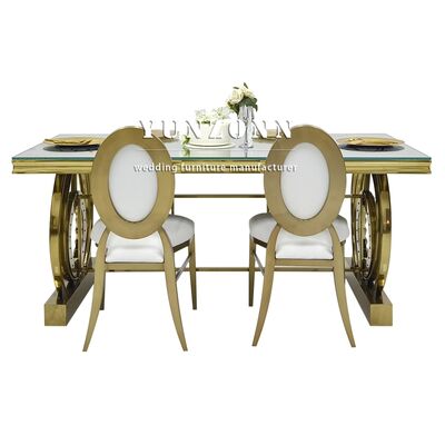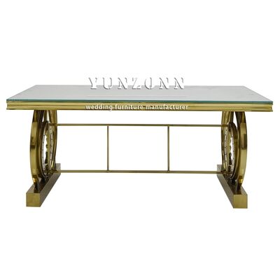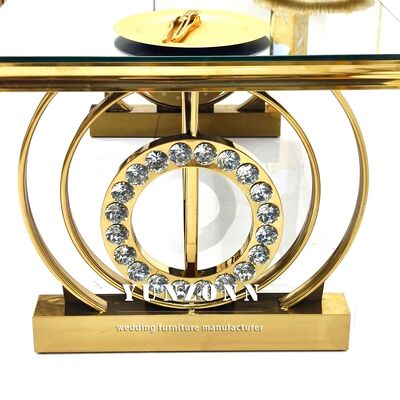 | Nombre del Producto: | Mesa de Banquete con Marco de Acero Inoxidable y Decoración de Cristal para Bodas, Hoteles, Eventos, Mesa con Escritorio de Cristal de Espejo, Mobiliario de Hotel |