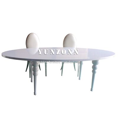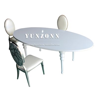 Blanco exterior de acero inoxidable oval de lujo novia mesa boda