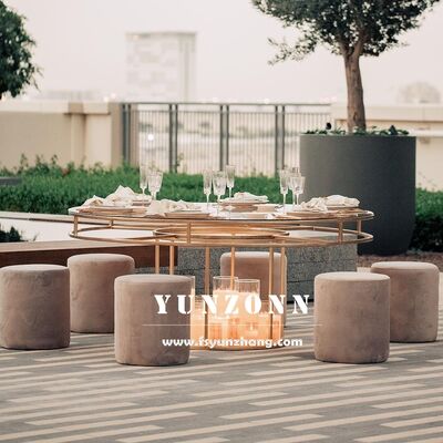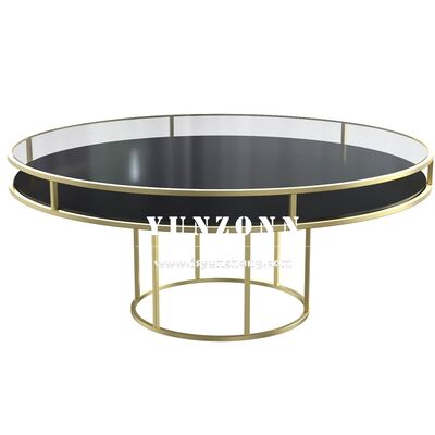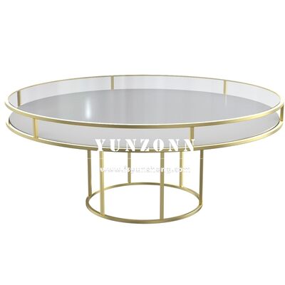 | Nombre del producto: | Tabla de pastel de acero inoxidable de alta calidad de vidrio superior oro para la decoración de la fiesta de la boda |