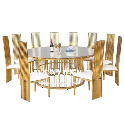 | Nombre del Producto: | Mesas Redondas Doradas de Acero Inoxidable para Eventos, Diseño de Mesa y Sillas |