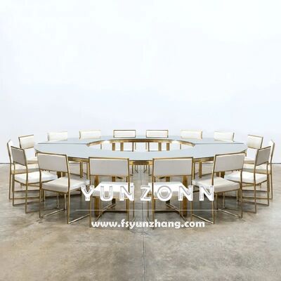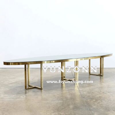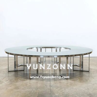 | Nombre del producto: | Lujo de vidrio negro Luna llena en forma de S Mesa de comedor de acero inoxidable Banquete de bodas Mesa de eventos para hoteles |