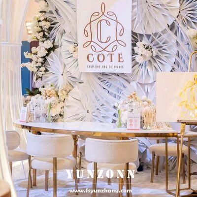 | Nombre del producto: | Nueva llegada Hotel Salón de muebles Fabricación de suministros Tejido blanco Oro Acero inoxidable Marco de metal Luxo sillas de evento apilables |