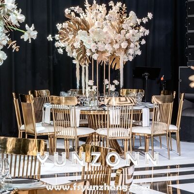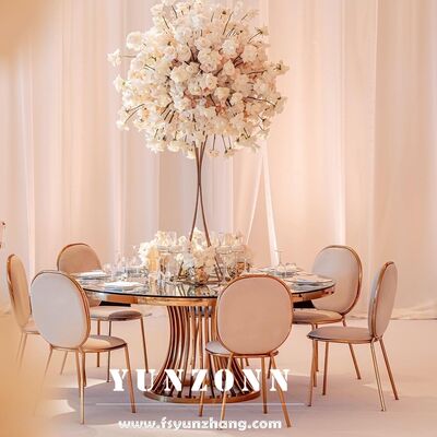 | Product Name: | Luxury round Dining Table with Gold Stainless Steel Base and Glass Top for Wedding and Event Banquets Hotel Furniture | ||
