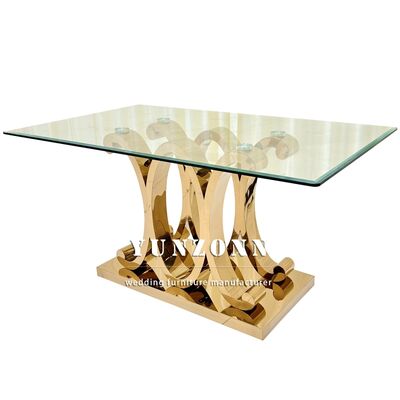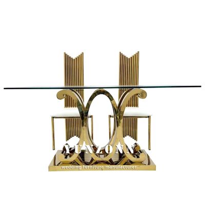 | Nombre del producto: | Conjuntos especiales de mesa de comedor de cristal de lujo de acero inoxidable dorado para novios para eventos de bodas y uso en hoteles |