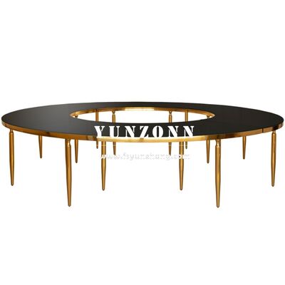 | Nombre del producto: | Luxury Modern Gable Gold Wave Table redondo Muebles de hotel de acero inoxidable para comidas y eventos al aire libre Bodas Hoteles de media luna |