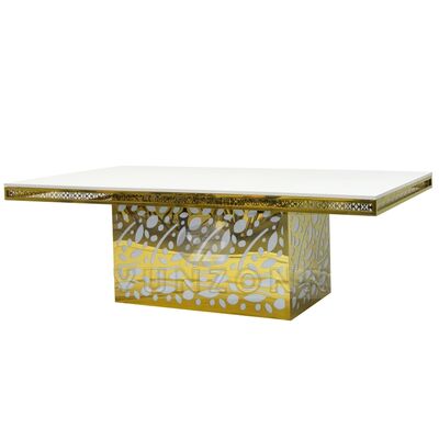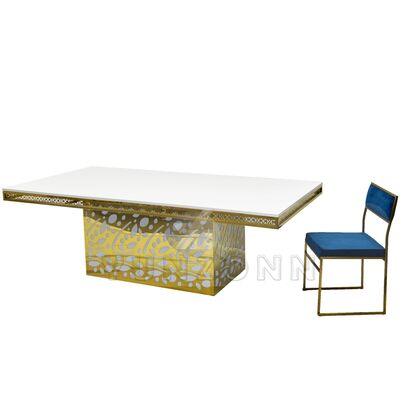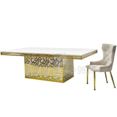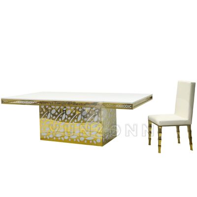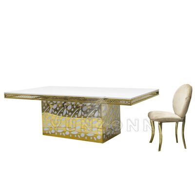 Hotel de lujo colgante de cristal de acero inoxidable vidrio dorado boda y evento mesa de comedor para banquetes restaurantes y fiestas |