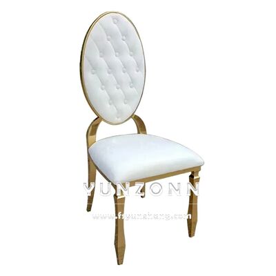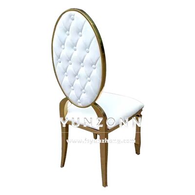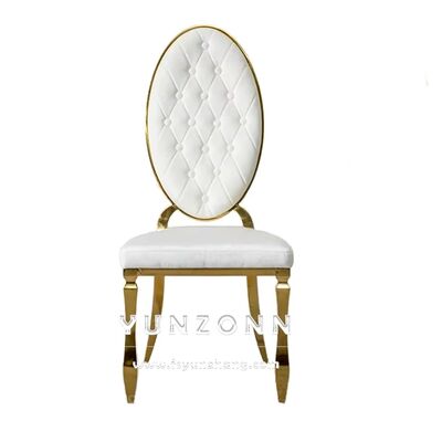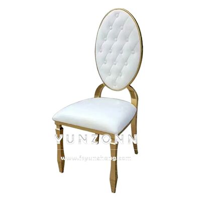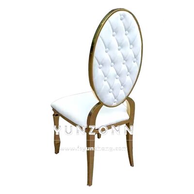 | Nombre del producto: | Moderno de espalda redonda de metal Hotel Restaurante Banquete silla botón decoración silla de comedor de cuero PU |