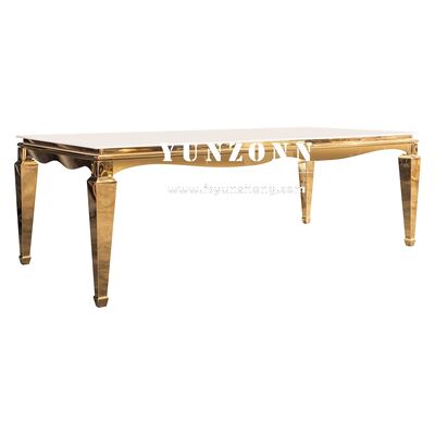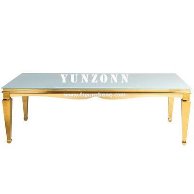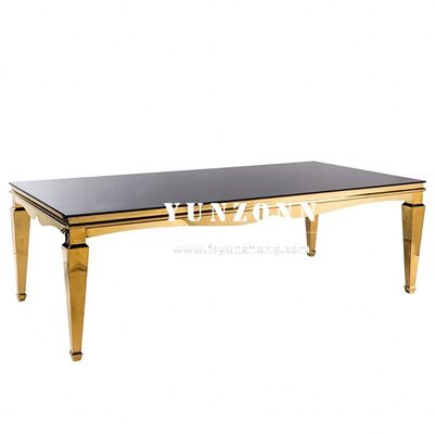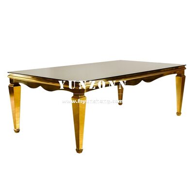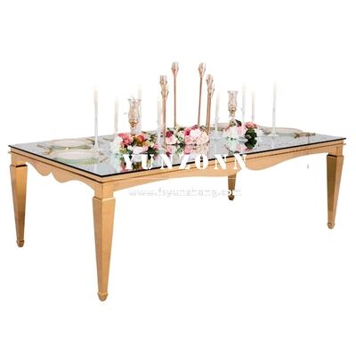 | Nombre del producto: | Moderno Oro de acero inoxidable de vidrio espejo de la parte superior de la mesa de comedor Hoteles Bodas Fiestas Eventos al aire libre Uso de la mesa de banquete |