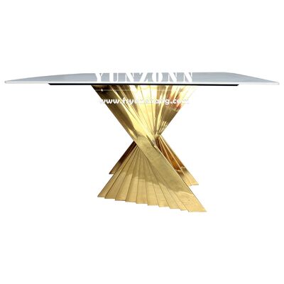 | Nombre del producto: | Mesa de comedor de lujo de alta calidad de acero inoxidable dorado/plateado para bodas con tapa de vidrio templado |