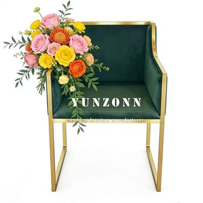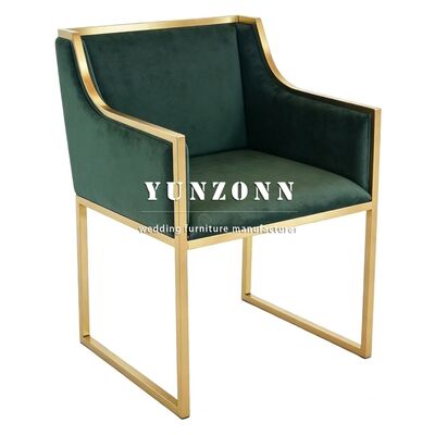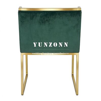 | Nombre del producto: | Jardín al aire libre Restaurante Hotel Banquete Muebles de comedor Muebles de pie de acero inoxidable de oro Tejido de terciopelo de color verde oscuro sillas de boda |