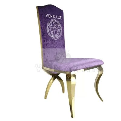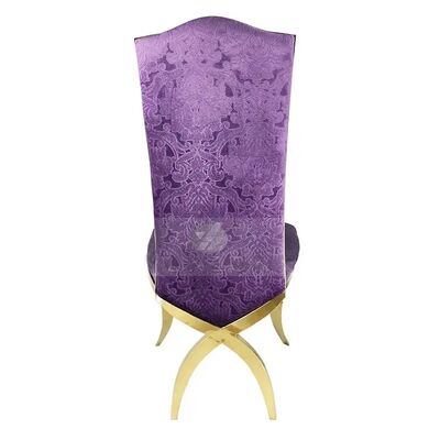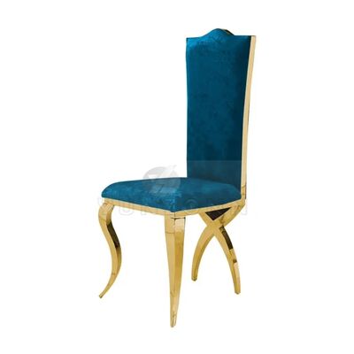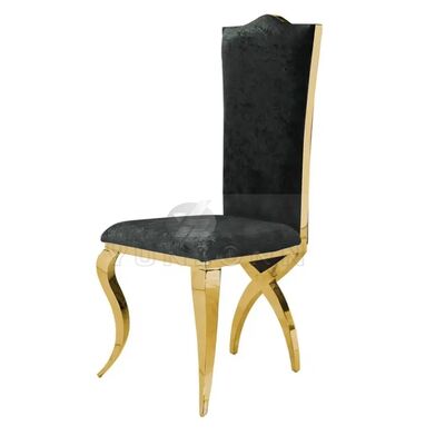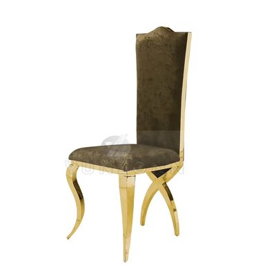 | Nombre del producto: | Silla de comedor de lujo tipo trono con respaldo alto en acero inoxidable dorado con patas cruzadas para hoteles y bodas |