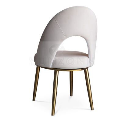 | Nombre del producto: | Silla beige de respaldo abierto con patas de acero inoxidable dorado de lujo para bodas, hoteles, eventos y banquetes al aire libre |
