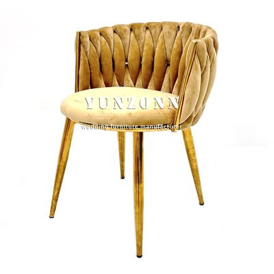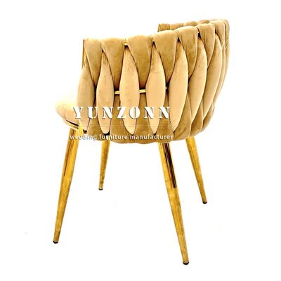 | Nombre del producto: | Sillón individual de terciopelo con silla de comedor tejida con cuerda, nuevo diseño, silla de salón para bodas para banquetes y restaurantes |