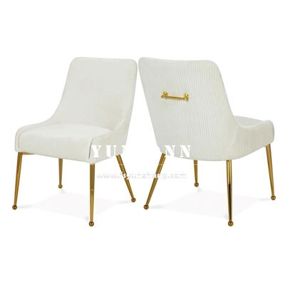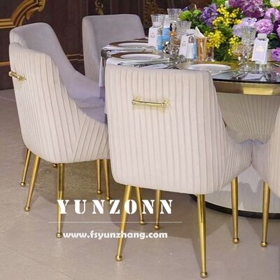 | Nombre del producto: | Sillas de comedor tapizadas de terciopelo beige con respaldo de línea y asa tubular de acero inoxidable dorado de hotel de lujo para comedor |