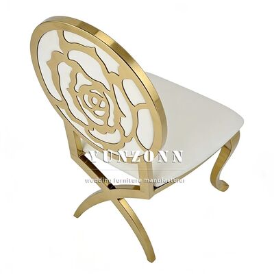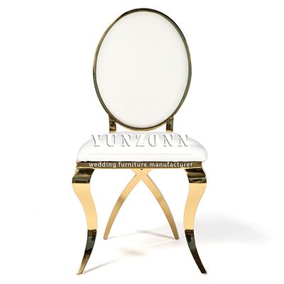 | Nombre del Producto: | Modernas Sillas de Comedor de Acero Inoxidable con Patas Cruzadas de PU Blanco para Bodas, Apartamentos, Villas, Banquetes, Fiestas |